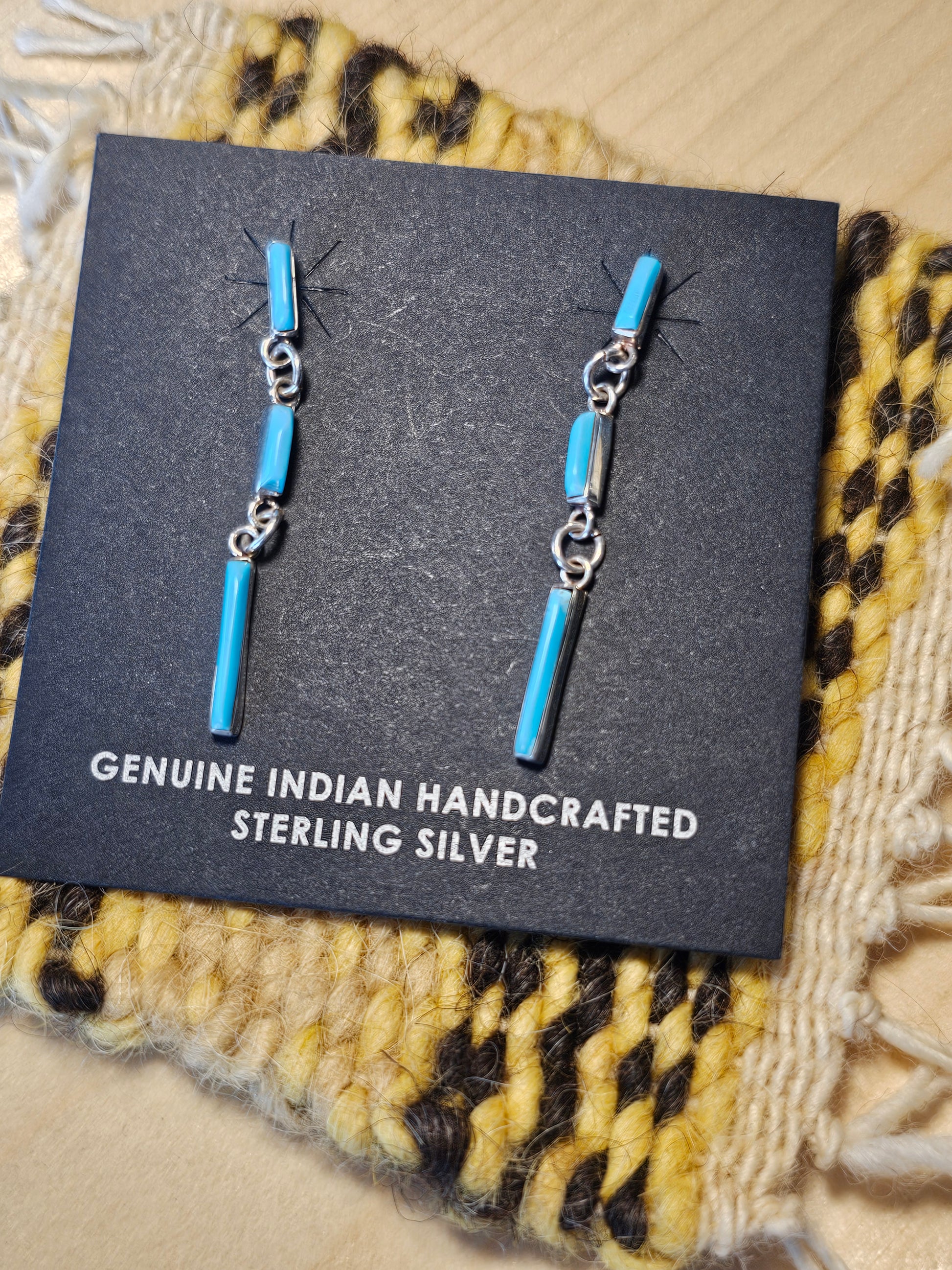 Three bar turquoise earrings. Hand made from artists of the Zuni Nation.
