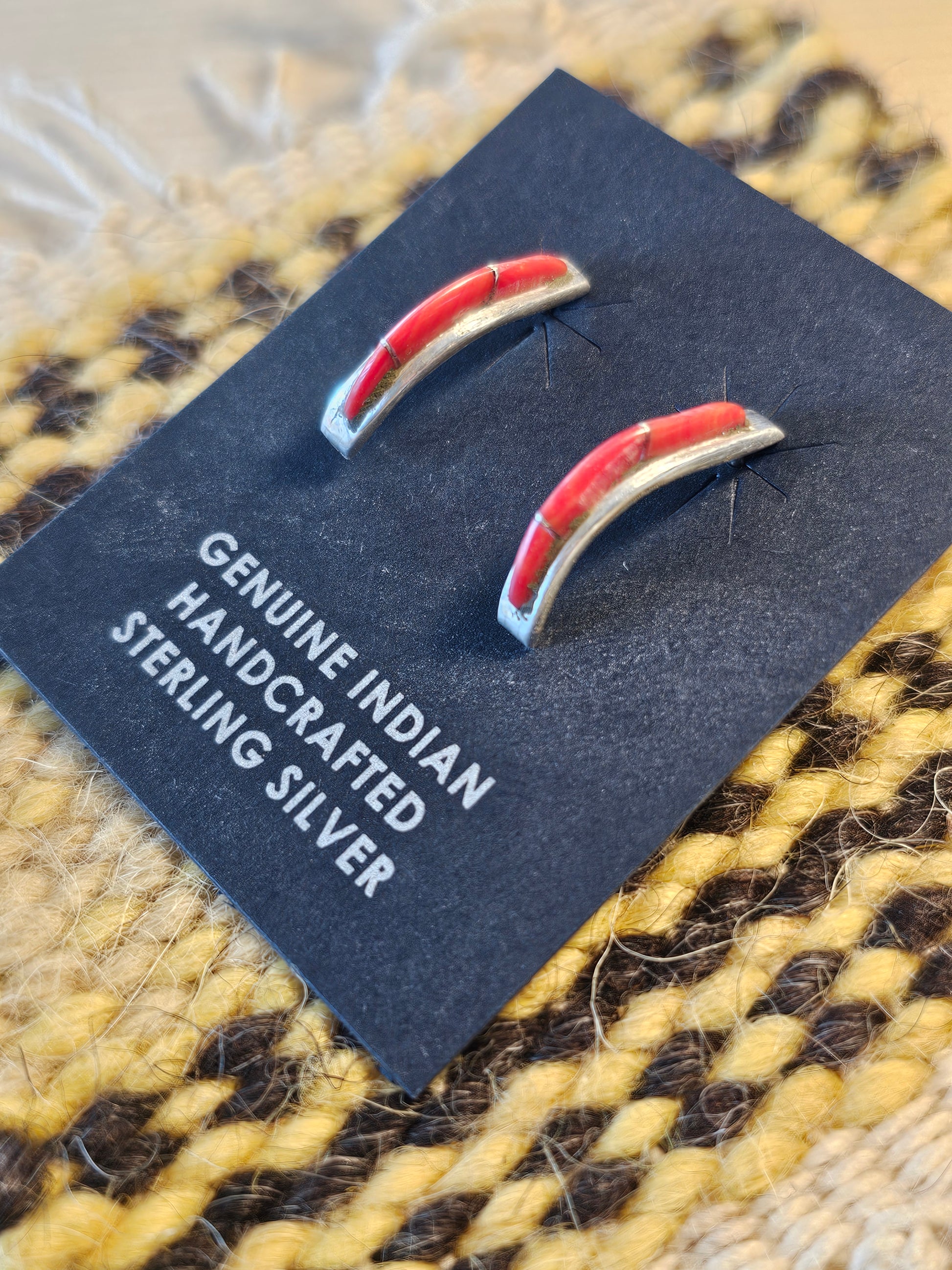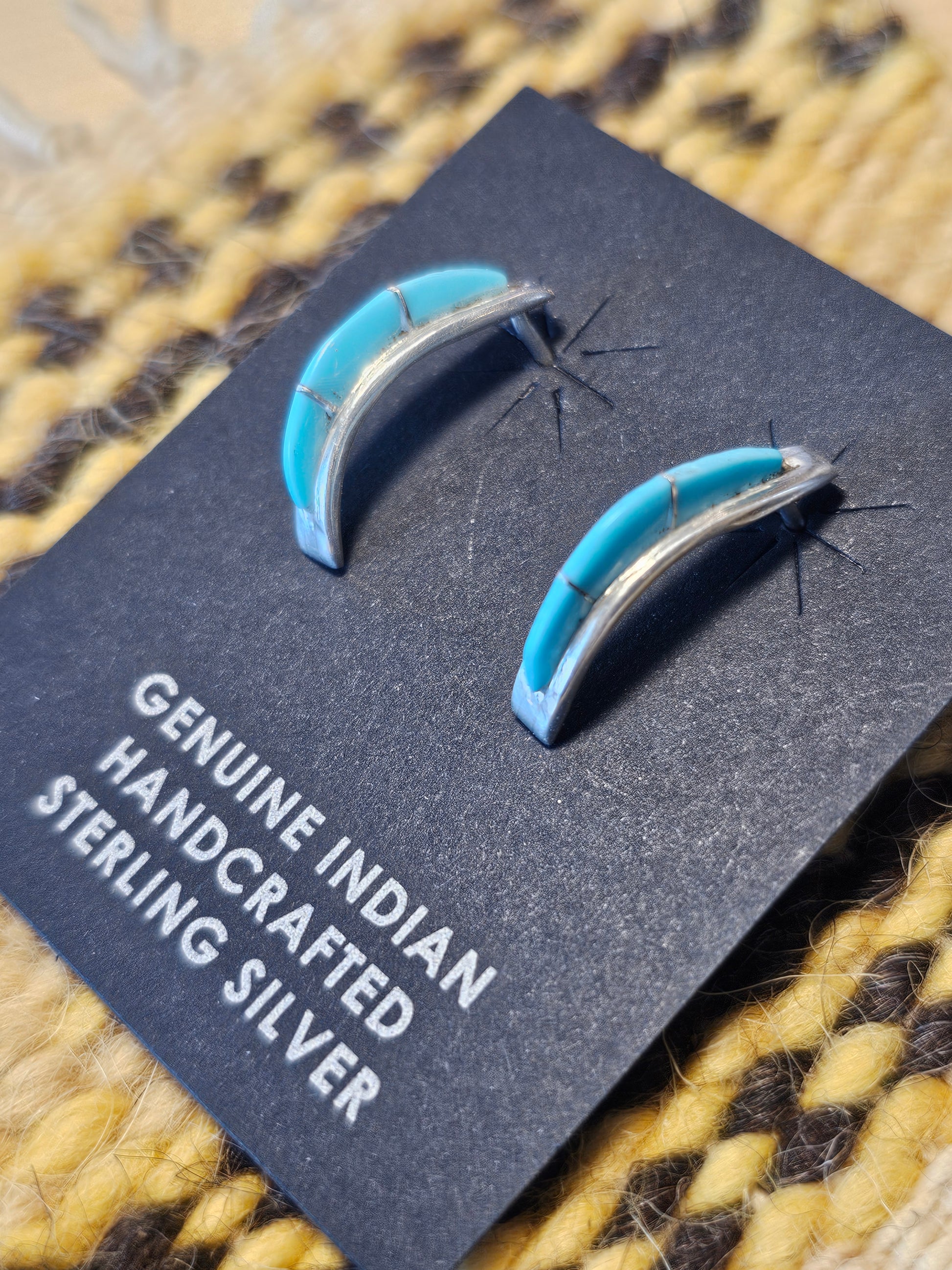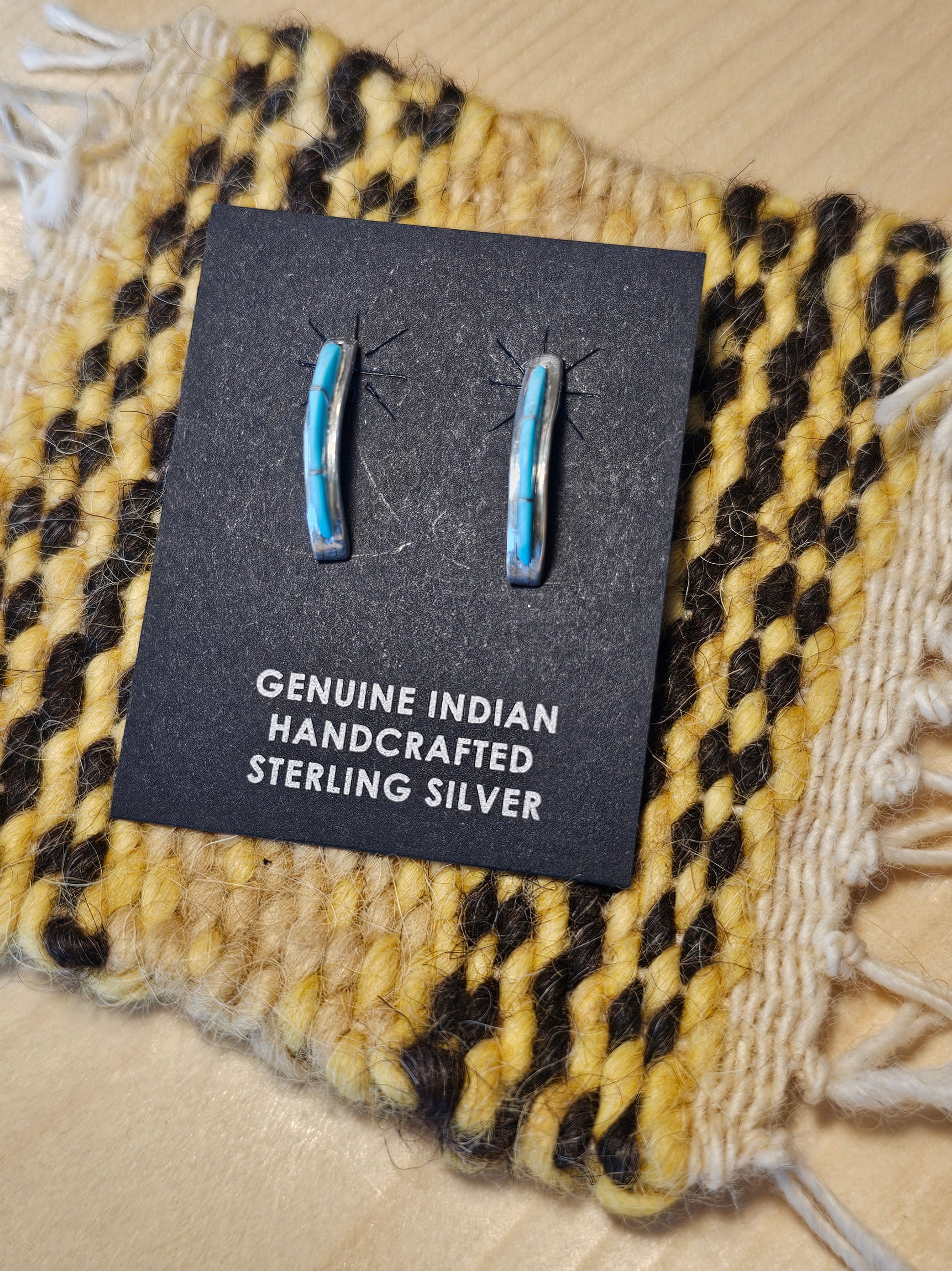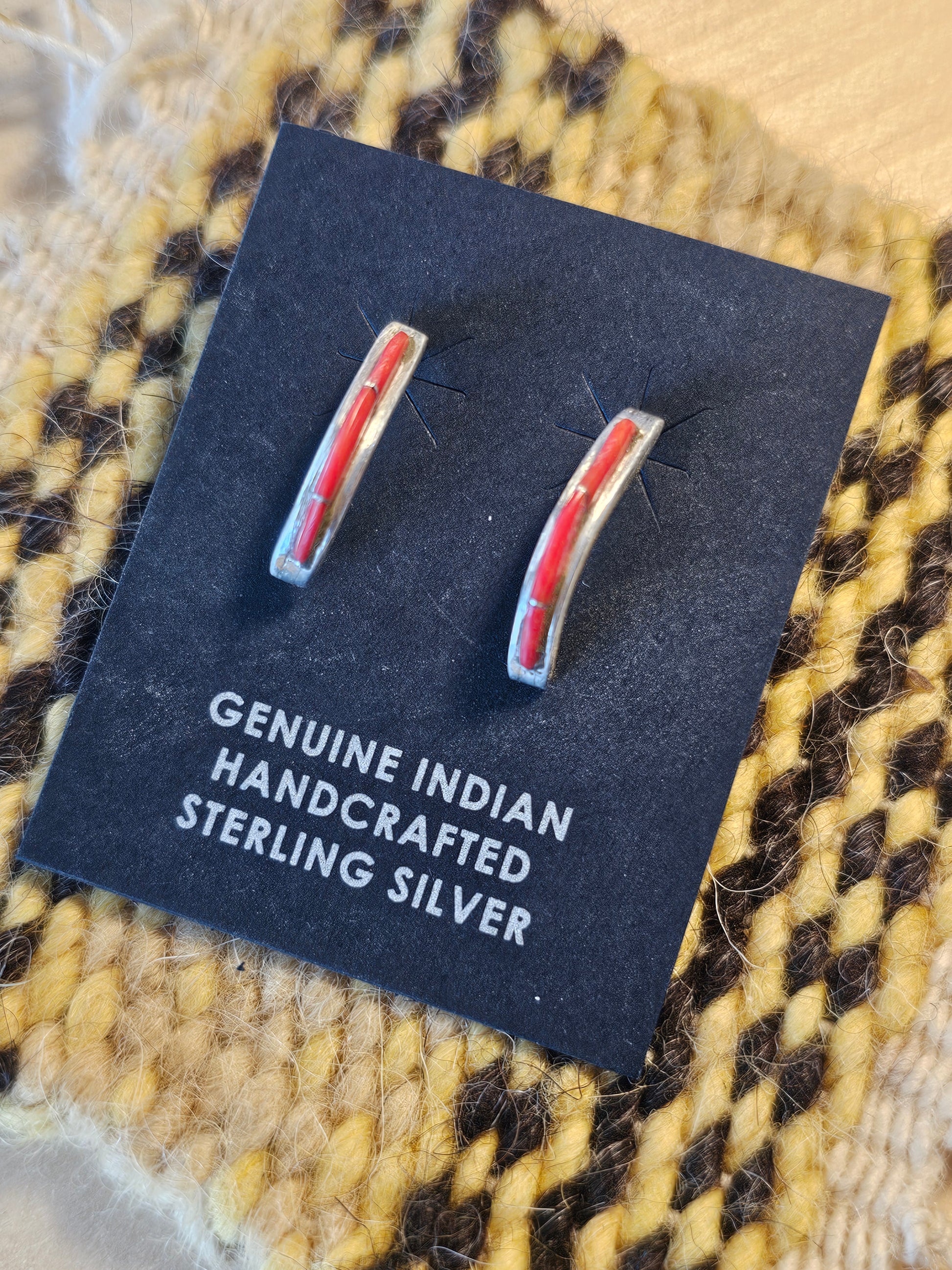 Turquoise or Coral quarter loop earrings. Hand made from artists of the Zuni Nation.