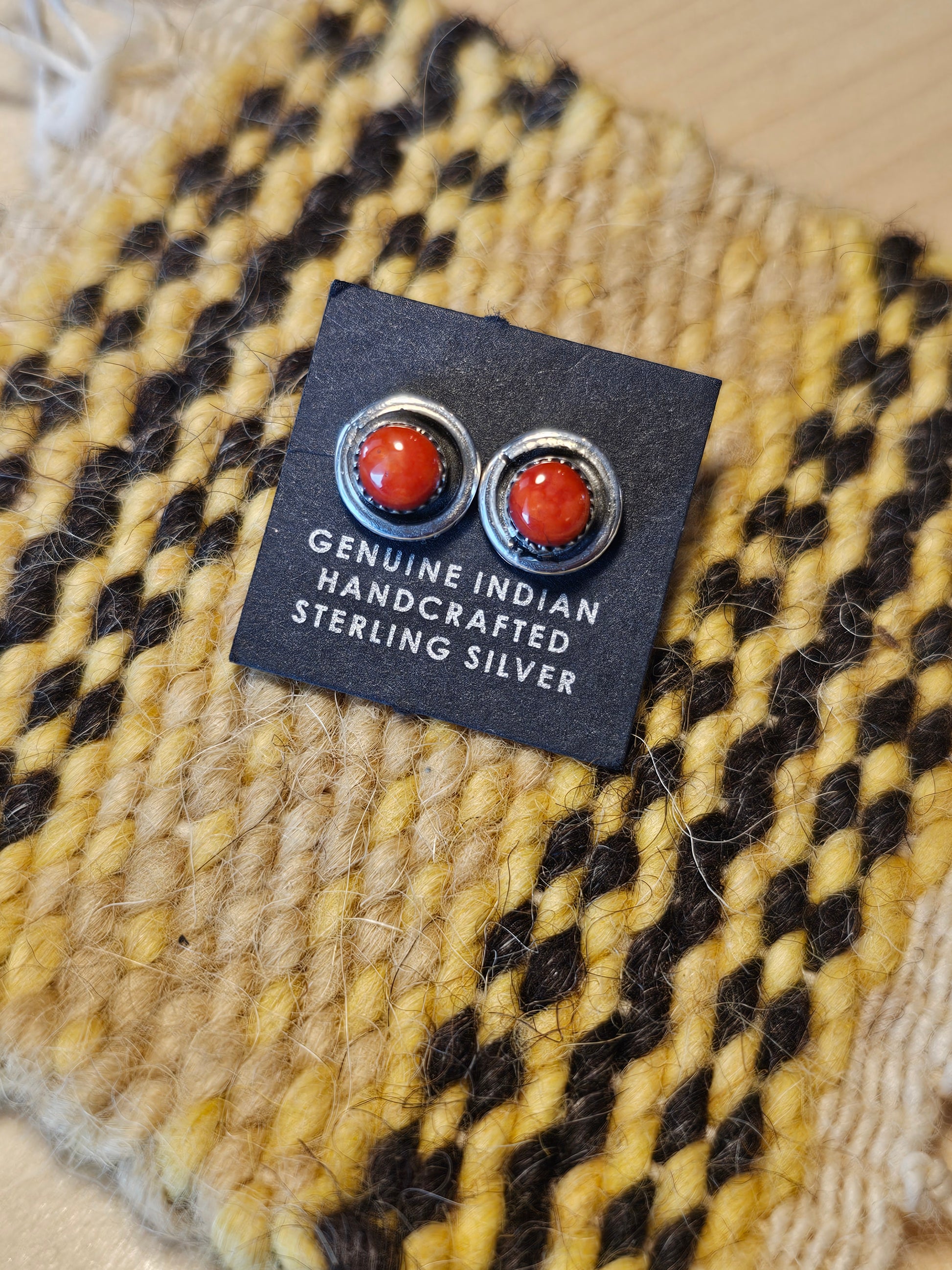 Coral stud earrings. Hand made from artists of the Zuni Nation.