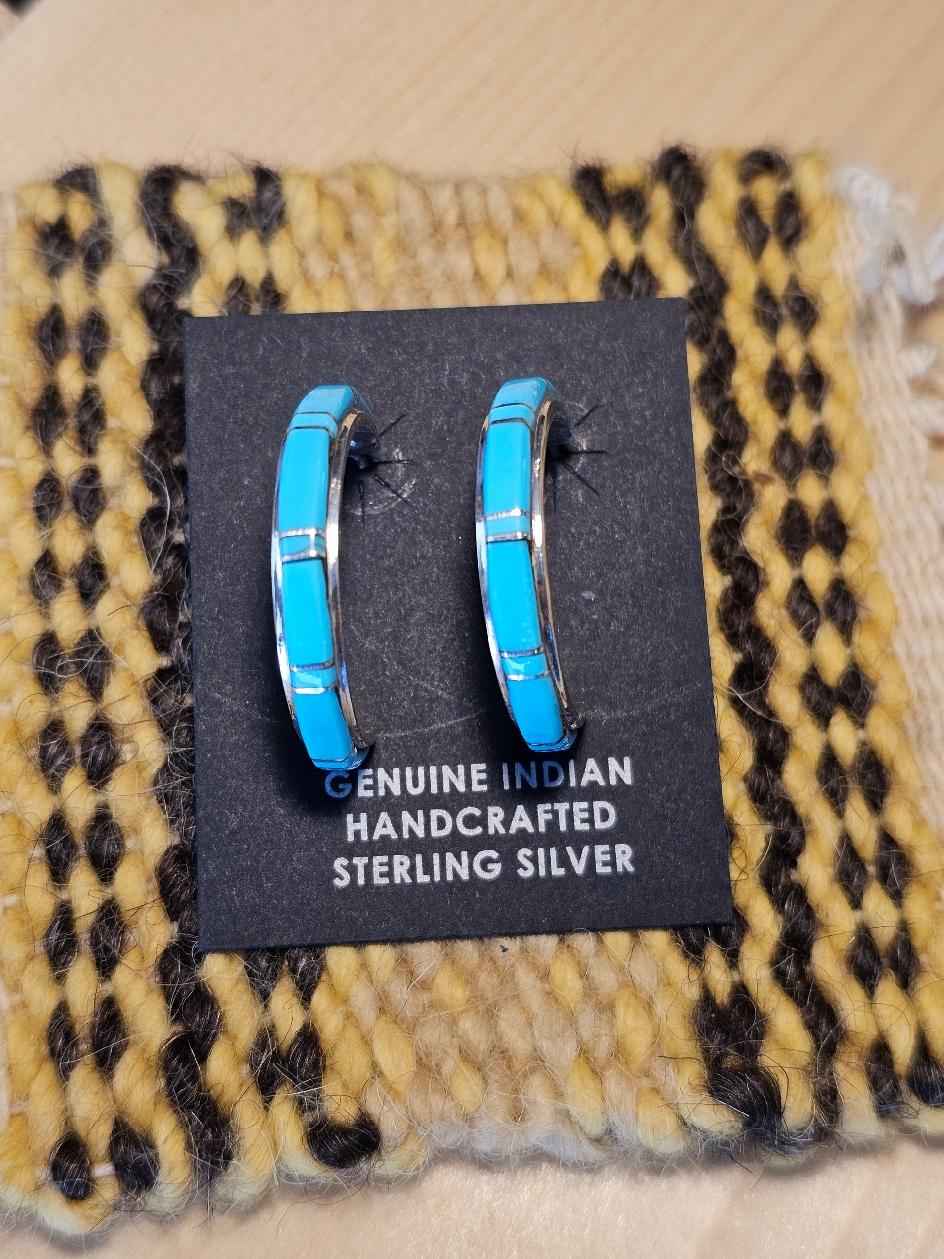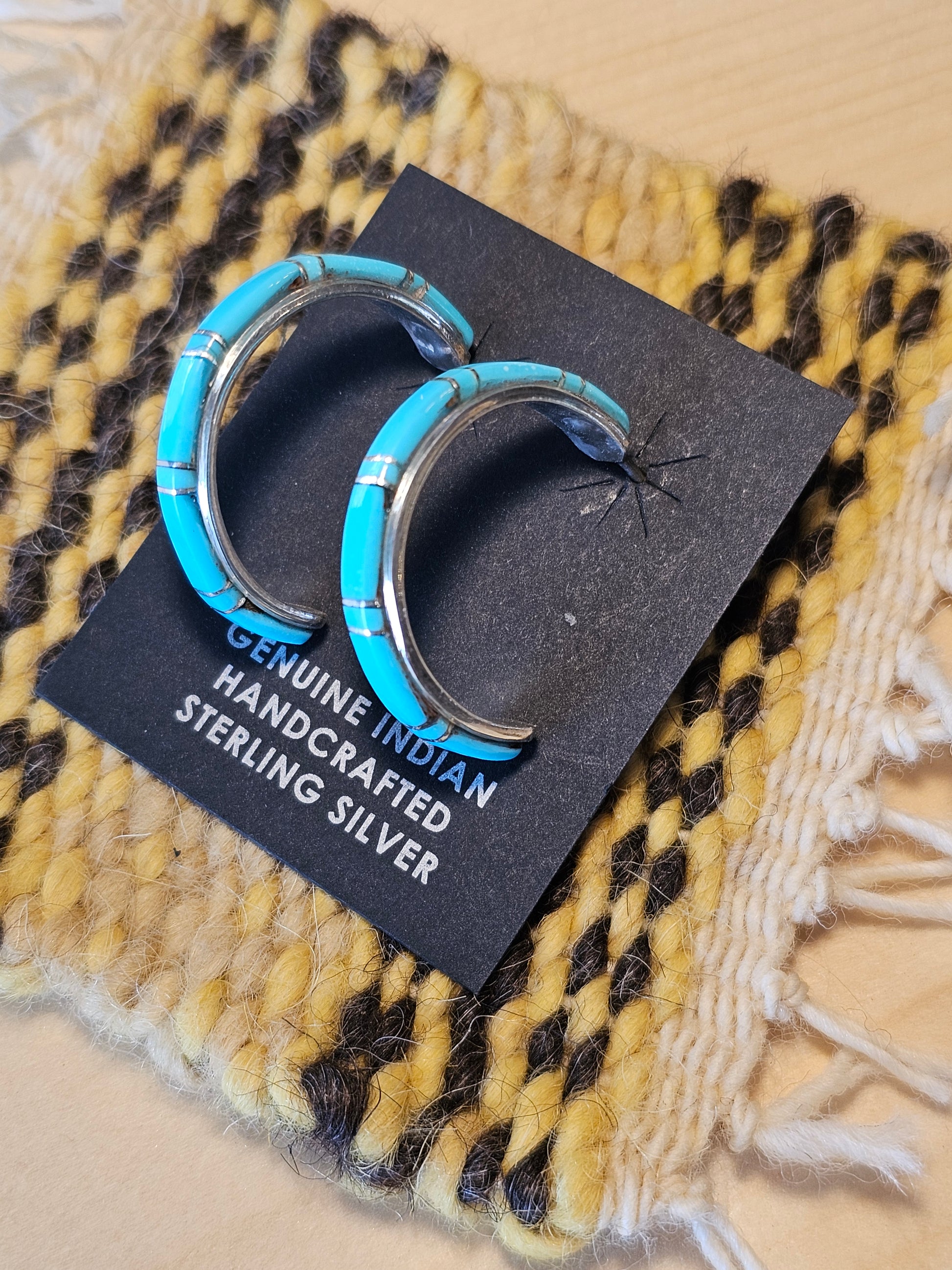 Turquoise inlay half loop earrings. Hand made from artists of the Zuni Nation.