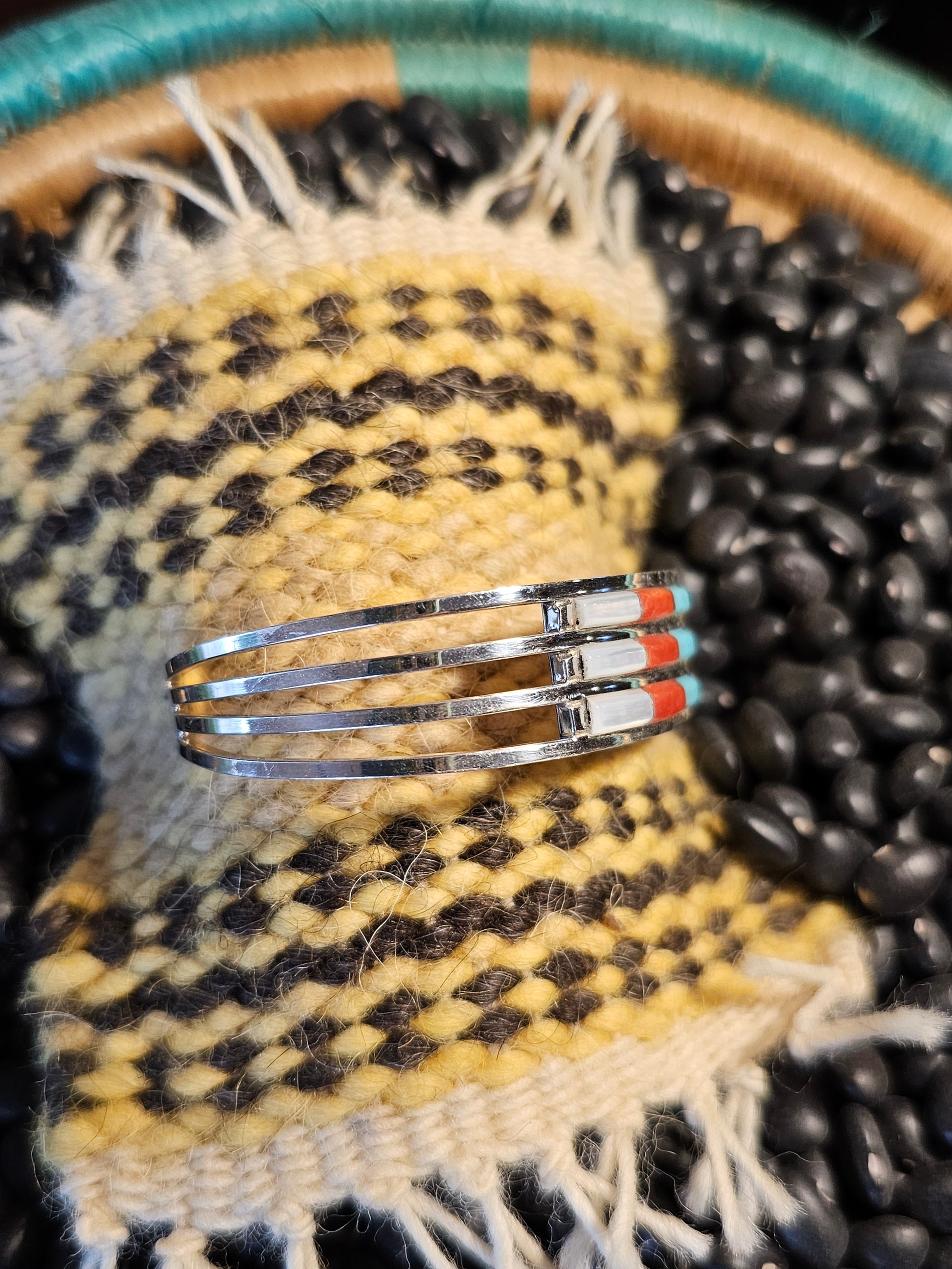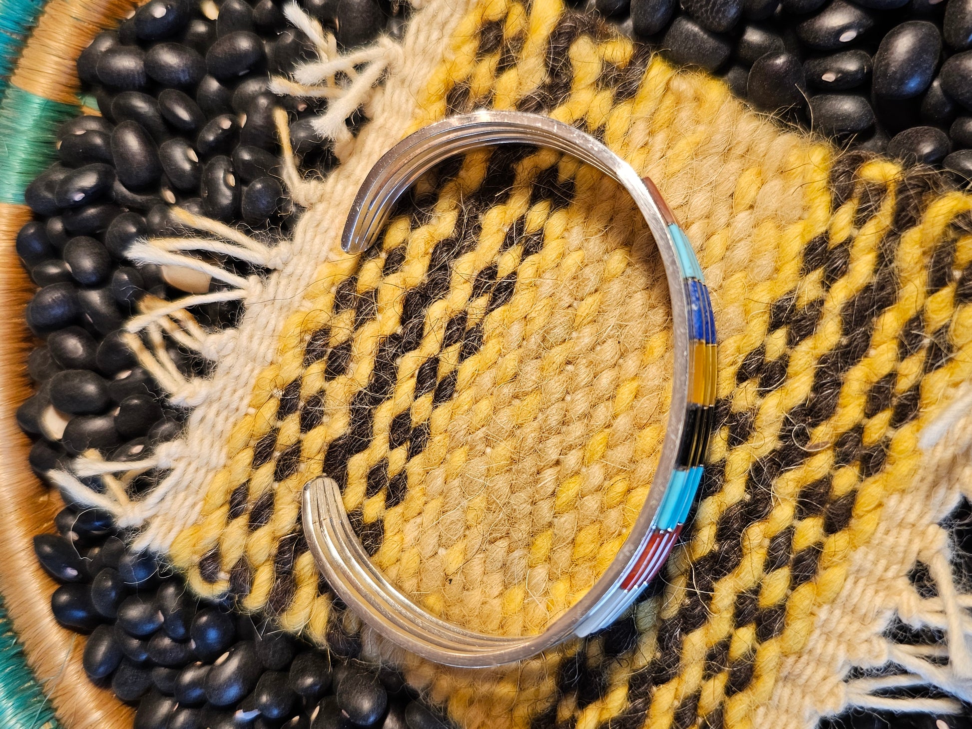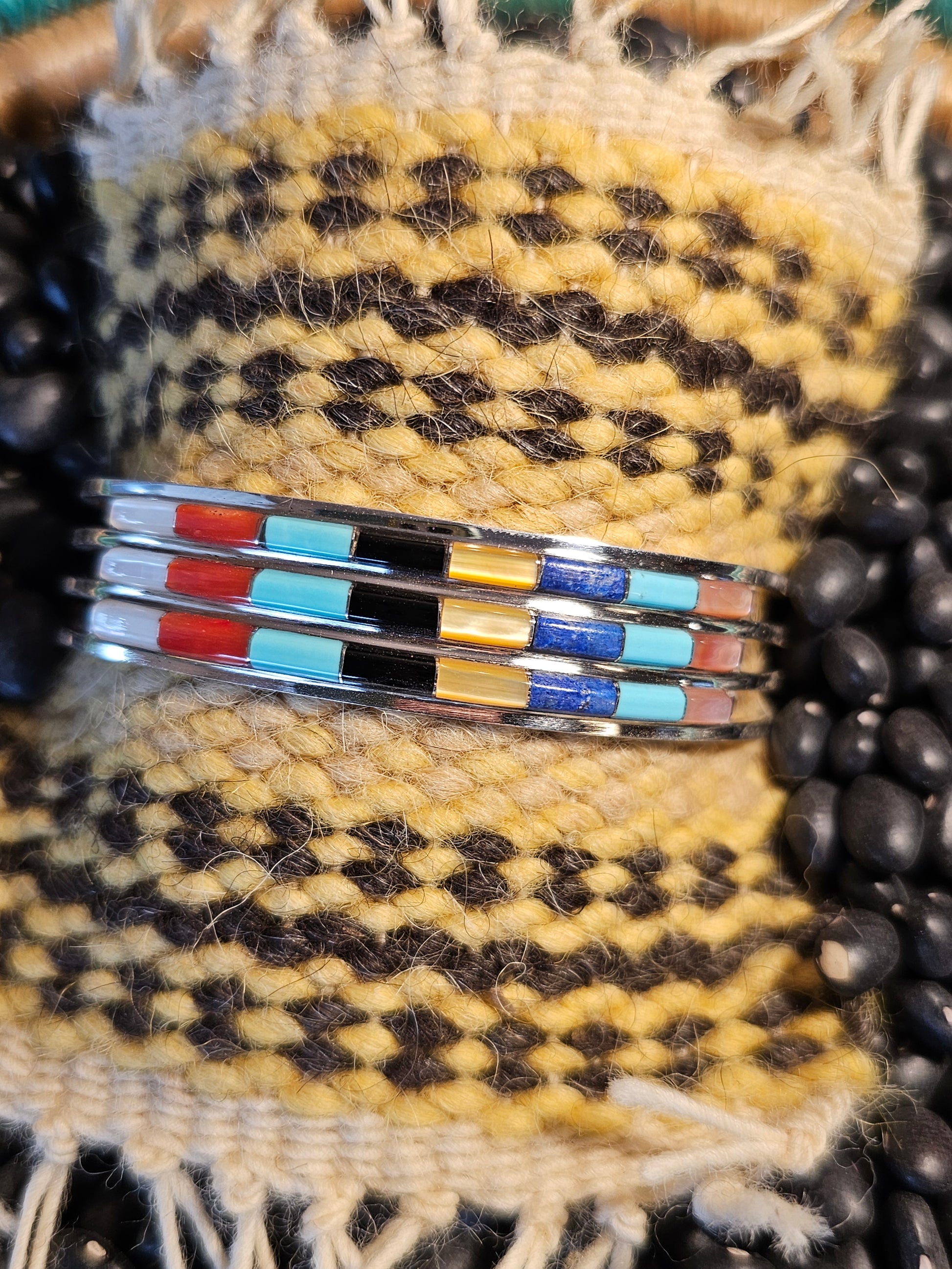 Three-layer Zuni multi stone inlay bracelet.